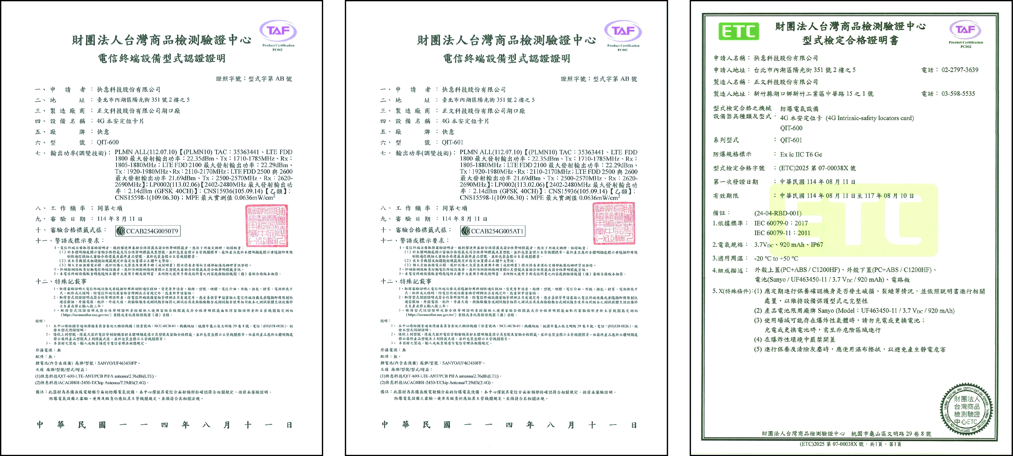 QIT600/QIT601 4G Intrinsic-safety locators card Certification Approved